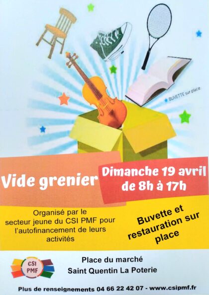 La mairie de Saint Quentin la Poterie organise un vide grenier au profit du CSI PMF